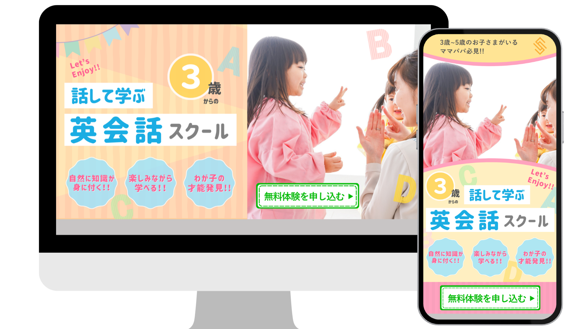 【ターゲット】3~7歳までのお子さまや初めて英会話を習う子どもがいる親【意識したポイント】お子様が見ても親が見ても楽しそうだと伝わるように、カラフルな配色と図形を多く使う。